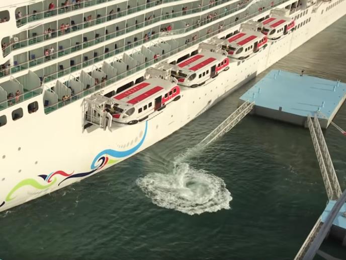 Međutim, tokom pristajanja, ogroman kruzer je udario u dokove i potpuno potopio stubiće za sidrenje.