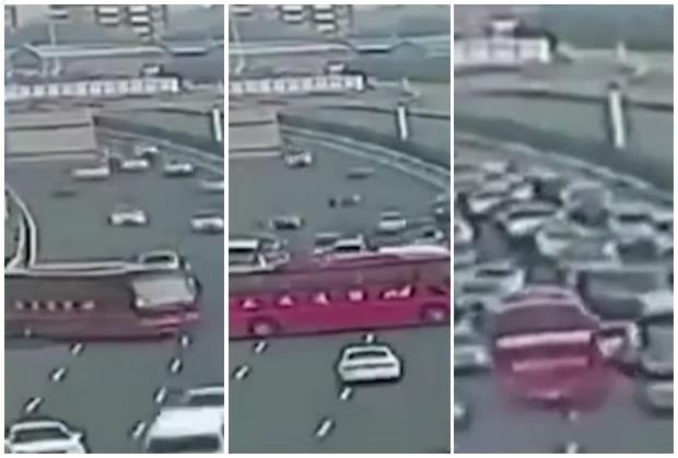 Vozač autobusa u Kini je izazvao haos na auto-putu kada okrenuo preko 6 traka pokušao da okrene vozilo i krene u suprotnom smeru.