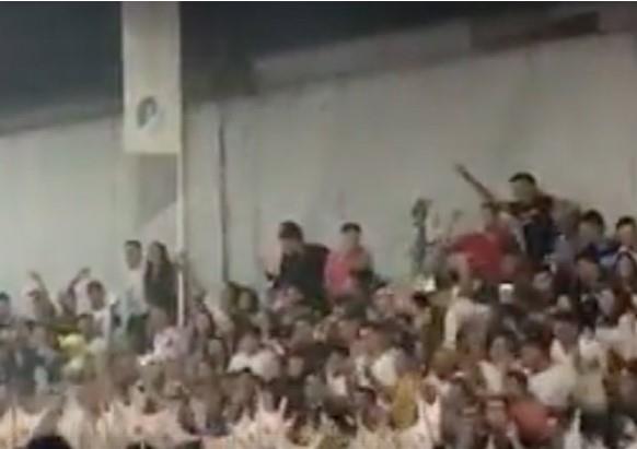 Na snimku se vidi kako oko 250 ljudi skače uz muziku, pre nego što je smrtonosna tišina ispunila arenu samo nekoliko trenutaka pošto se tribina urušila ispod njih.