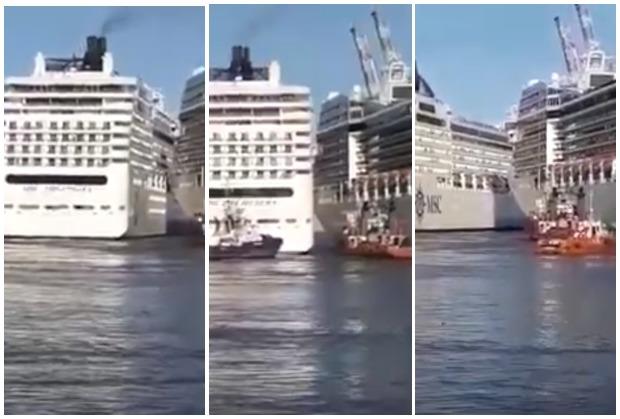 Trenutak sudara dva kruzera ispred veoma prometne luke uhvaćen je na snimku.