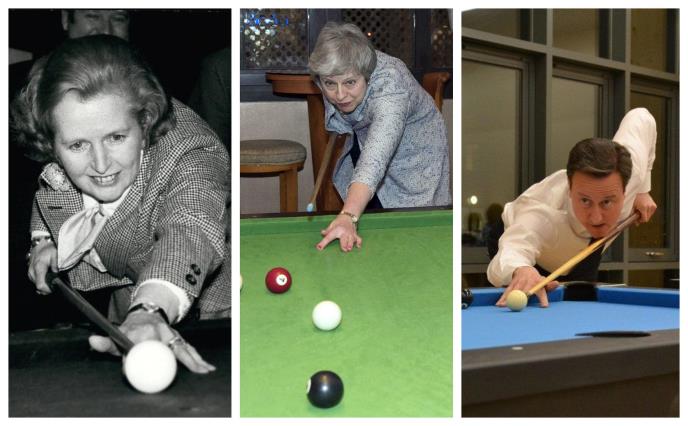 Tako su podsetili da se i Čelična lejdi Margaret Tačer svojevremeno slikala tokom partije bilijara, a potom i Toni Bler i Džejms Kameron.