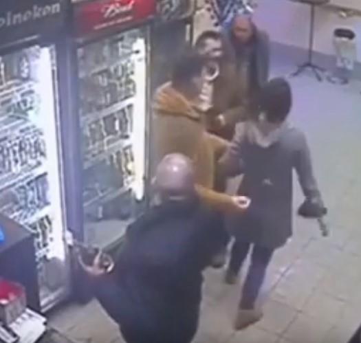 Nadzorne kamere su snimile muškarca koji jednog pijanca baca u frižider sa pićima. Toliko ga je udarao da se činilo kao da želi da ga ugura unutra i polupa sve.