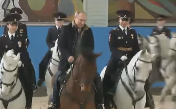 Putin je posetio puk uoči 8. marta. Pripadnice ženske konjičke patrole i turističke policije pozvale su ga ranije da se upozna sa njihovim poslom.