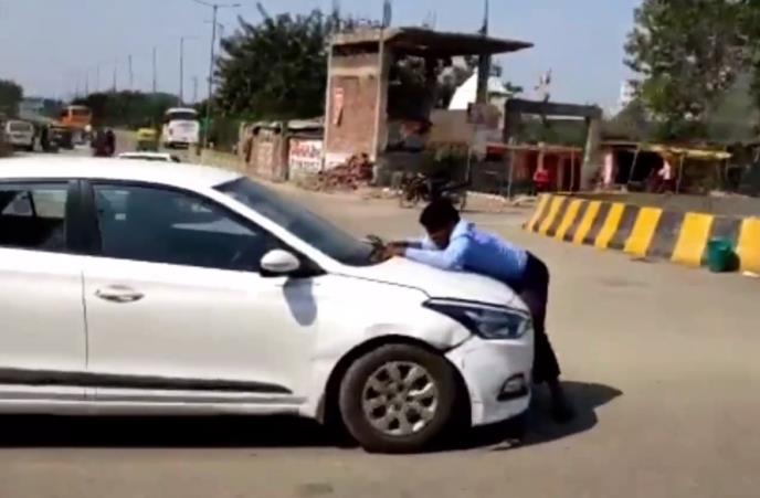 Kamera je snimila deo sukoba na kom se vidi kako se Jagbir drži za haubu, dok vozač automobila pokretima pokušava da ga "skine".