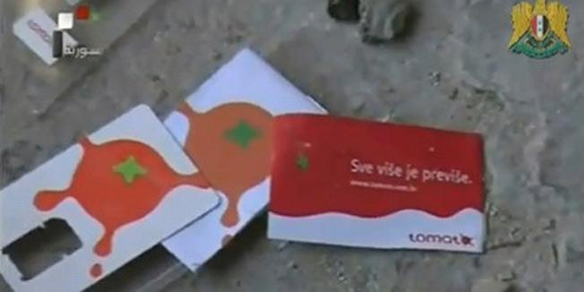 ZAGREB - Sirijska televizija je u svojim vestima nedavno izvestila da su režimske snage posle okršaja s pobunjenicima u Latakiji upali u njihovo sedište, u kojem su pronašli veliku količinu oružja, lekova i raznih drugih potrepština među kojima su bile i, kako snimak prikazuje, Tomato kartice za mobilne telefone.