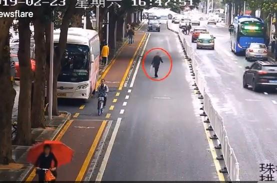 Jedna zaštitna oraga u južnoj Kini dvaput je oborena u dva dana od strane prolaznika koji su pokušavali da pređu preko ulice na za to nedozvoljenom mestu.