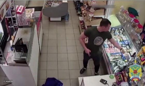 Posle nekog vremena pljačkaš se očigledno setio cilja svoje posete i počeo da traži svoj pištolj u džepovima jakne i okolo. Nakon što je pronašao oružje, pokušao je da zapreti prodavcu, tražeći boks cigareta i bocu votke, ali su ga radnici razoružali.