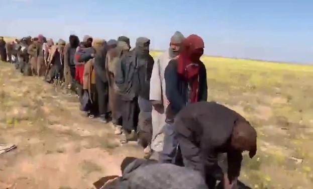 Snimak koja se ovih dana pojavio prikazuje razmere ove masovne predaje džihadista. Na njoj se vidi nepregledna kolona ljudi u pustinji, u odrpanoj odeći, lica prekrivenih maramama, kako stoje ili sede jedan ispred drugog-