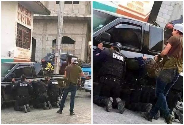 Ova fotografija predstavlja zastrašujući trenutak kada je kriminalna grupa pod pretnjom oružjem, primorala policajce da kleknu. Potom su oteli jedinicu od 11 policajaca i to nasred ulice u centralom Meksiku.