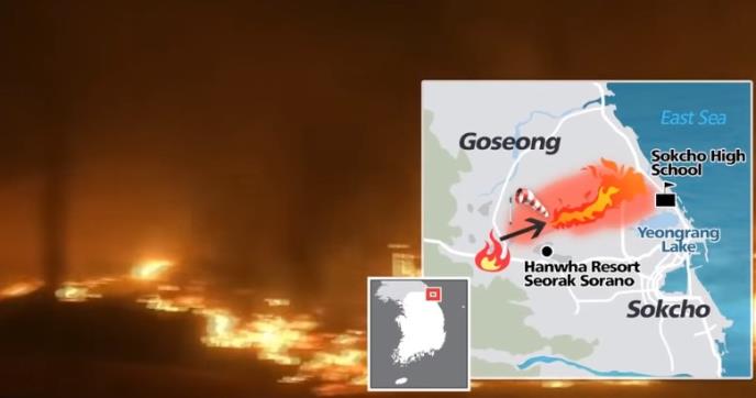 Požari su izbili sinoć u istočnoj prokrajini Gangvon i zahvatili gradove Sokčo i Gangneung, a izgorelo je oko 525 hektara i oko 198 kuća, skladišta i drugih zgrada, dodaje vlada.