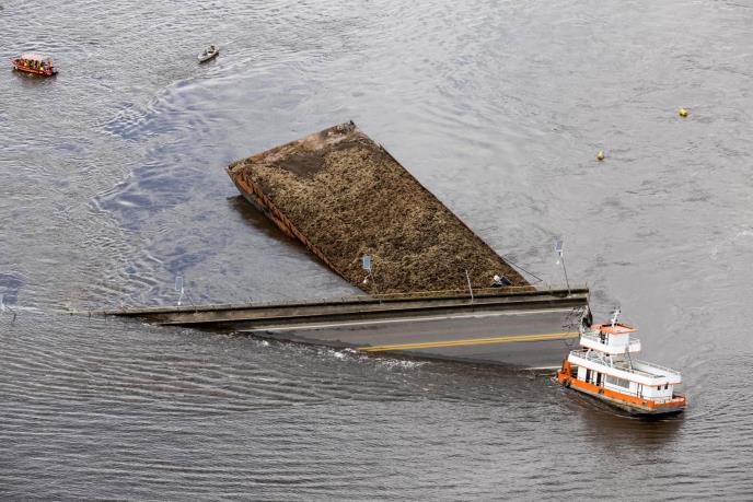Očevici su izjavili da su dva automobila pala u reku kad je brod udario u jedan od stubova.
