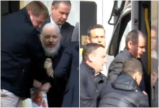 Na snimku koji se pojavio na internetu može se videti kako su Asanža bukvalno iznela sedmorica policajaca u civilu i unela ga u policijsko vozilo.