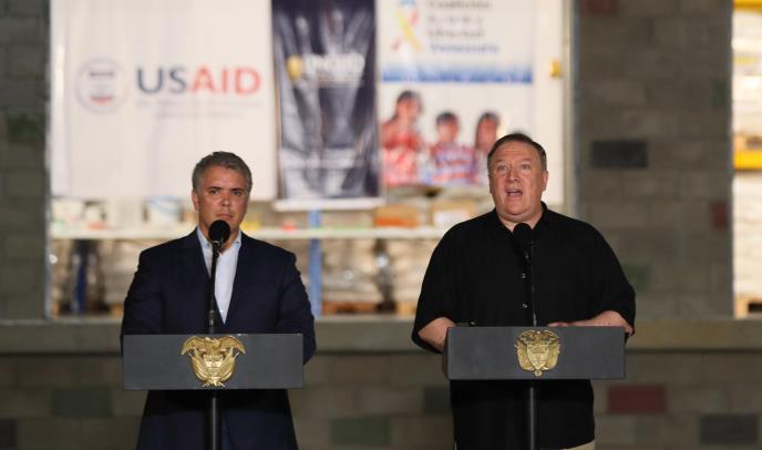 Američki državni sekretar obišao je centar za migrante u Kukuti zajedno s predsednikom Kolumbije Ivanom Dukeom. Za to vreme, venecuelanske bezbednosne snage su u opremi za razbijanje demonstracija stajale na sredini mosta koji razdavaja Venecuelu i Kolumbiju.