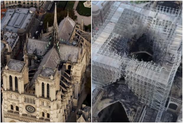 Požar je uništio krov i toranj, a kolike su razmere ove katastrofe može se videti u snimku koji prikazuje građevinu "pre i posle".