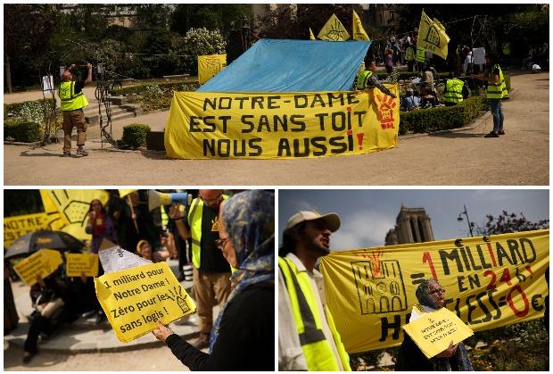 Više desetina članova Udruženja francuskih beskućnika okupilo se danas na protestu ispred opustošene katedrale Notr Dam u Parizu, zahtevajući da najsiromašniji Francuzi ne budu zaboravljeni, nakon što je prikupljeno više od milijardu evra dobrovoljnih priloga za obnovu te svetinje.