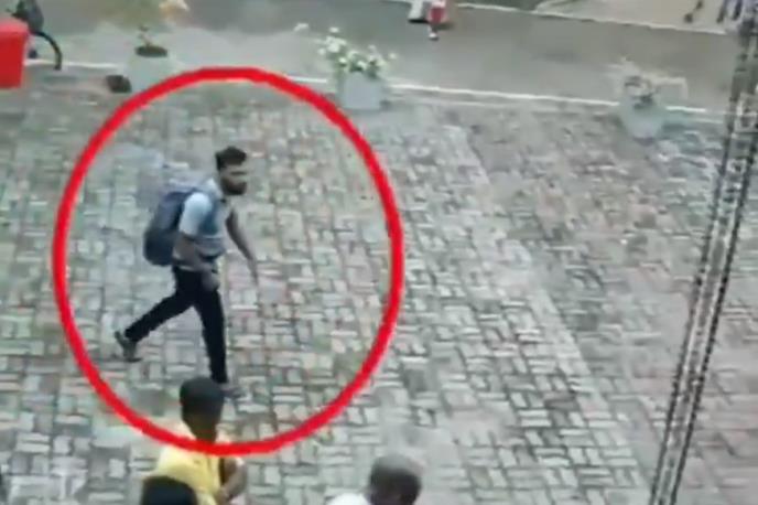 Na snimku koji je nastao nekoliko sekundi uoči napada vidi se kako tamnokosi muškarac sa velikim rancem ide ka crkvi.