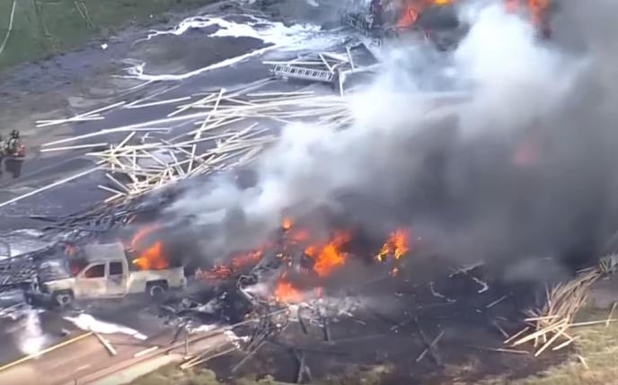 Svedoci kažu da su čuli više eksplozija, a na snimcima iz vazduha vidi se veliki požar na auto-putu.