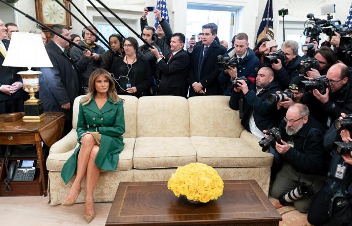 Naime, umesto da okače sliku kako je Melanija vesela i sa porodicom, primera radi, kako su mnogi i očekivali, rođendanska fotografija prikazuje prvu damu kako sedi sama okružena armijom fotografa i reportera.