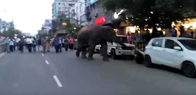 Mužjak slona iz obližnjeg rezervata, star oko 11 godina i težak više tona, u utorak se pojavio u glavnoj ulici Guvahatija, u državi Asam, ali niko nije bio povređen. Dok su ga na odstojanju pratili policajci i šumari, slon je samo odgurao nekoliko automobila pre nego što je predveče uspavan.