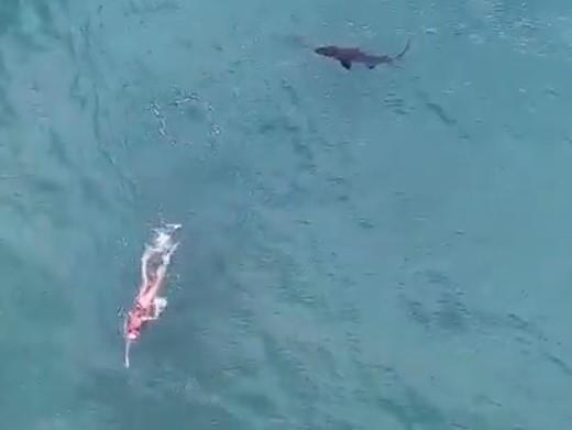 "Prilično se približava onom plivaču, brate. Šta radi?", čuo se jedan muškarac sa snimka. Na kraju se ajkula okrenula i zaplivala u drugom smeru.