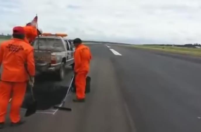 Tako je skupina radnika popravljala pistu na aerodromu Silvio Petirosi u Paragvaju kada je naišao avion.
