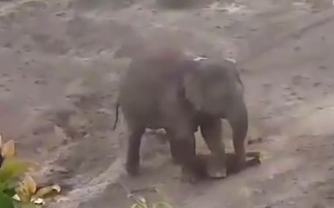 Kako mladi slon nije mogao da ustane, to je dalo vremena seljanima da se okupe i gađaju ga kamenjem što je razjarilo slonicu.