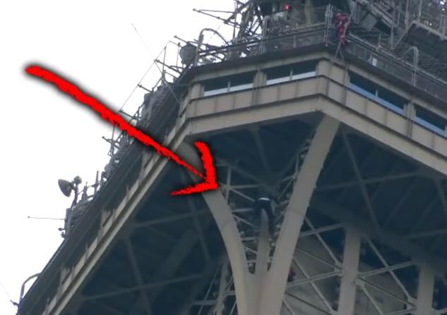 Vatrogasci su uspeli da ubede čoveka koji se popeo skoro na vrh Ajfelovog tornjai satima sedeo na visini od više od 270 metara.