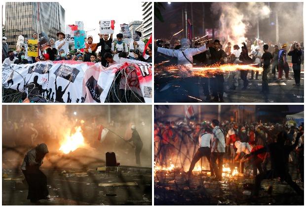 Prema izveštajima, 50.000 pripadnika snaga bezbednosti koristili su suzavac i vodene topove u borbi protiv demontranata koji su koristili kamenje, molotovlje koktele i drugih projektila koje su bacili nasilni demonstranti zbog reizbora aktuelnog predsednika Joko Vidodoa, koji je osvojio 55,5 odsto glasova.