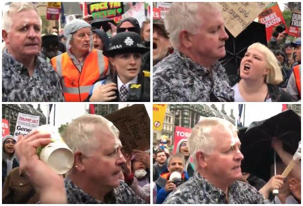 NAPAD NA TRAMPOVE PRISTALICE U LONDONU: Besna rulja umalo linčovala simpatizera predsednika SAD, gađali ga šejkom i vikali "Đubre nacističko" (VIDEO)