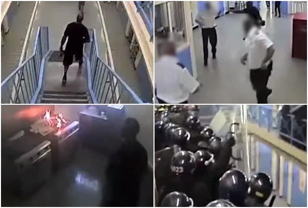 Može se videti kako udara policajca s leđa po glavi nekoliko puta. Policajac je u tom trenutku zaključavao vrata. Ubrzo su i ostali zatvorenici navalili na policajce.
