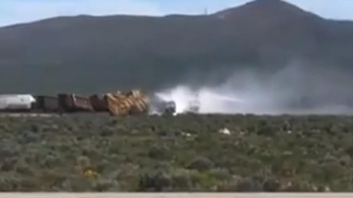Šokantni snimci pokazuju voz van koloseka, dok se hemikalije izlivaju iz vagona.