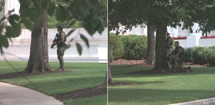 Novinar CBS-a na licu mesta objavio je slike osoblja Tajne službe koje traže sklonište iza stablala na travnjaku Bele kuće.