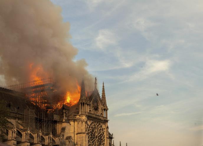 Ogroman požar zahvatio je 15. aprila katedralu Notr Dam u kome je izgoreo krov crkve, a vatrogasci su uspeli da spasu glavno zvono, kule i spoljne zidove.