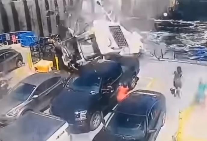 Izgledalo je kao da se beli kombi pojavio iz vedra neba i pao na trajekt. Nekoliko putnika je za dlaku izbeglo sigurnu smrt.