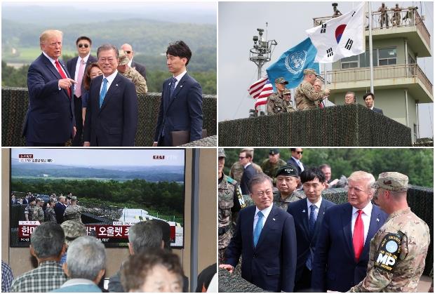 Tramp je posetio stražarske osmatračnice koje nadgledaju demilitarizovanu zonu gde je naglasio da je ova oblast bila "veoma, veoma opasna", ali se to promenilo otkad su započeti pregovori sa kim Džong-unom.