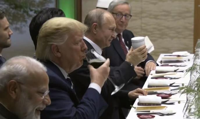 Ogromnu pažnju svetskih medija izazvala je bela šolja ruskog predsednika Vladimira Putina sa kojom se pojavio na svečanoj večeri tokom samita G20 u Osaki. Ovaj predmet je skrenuo pažnju javnosti nakon što su kamere zabeležile da je upravo tom šoljom Putin "nazdravio" sa predsednikom SAD Donaldom Trampom.