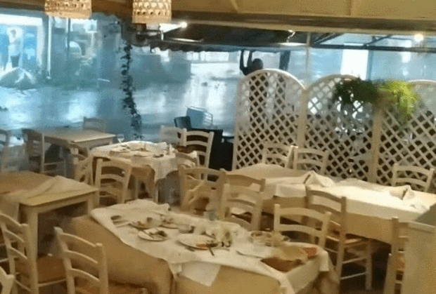 SEDELI SU U RESTORANU, A ONDA JE KRENUO UŽAS: Ovo je trenutak kada je počela oluja u Grčkoj, najgora u poslednjih nekoliko godina! (VIDEO)