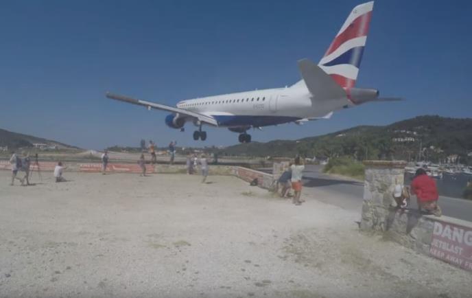 Na internetu se pojavio snimak koji pokazuje kako je avion "Britiš ervejza", nakon što se približavao pisti na Skijatosu, proleteo samo nekoliko metara iznad glava turista.