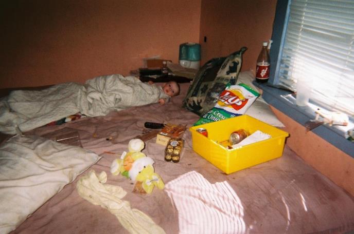 Na drugim slikama se vide i njene sestre koje su tada imale dve ili tri godine. Igrale su se među gomilom odeće i smeća, penjale se na prljavi krevet, a kako je sama rekla, u kuhinji je bilo više pilula i raznoraznoh lekova nego hrane.