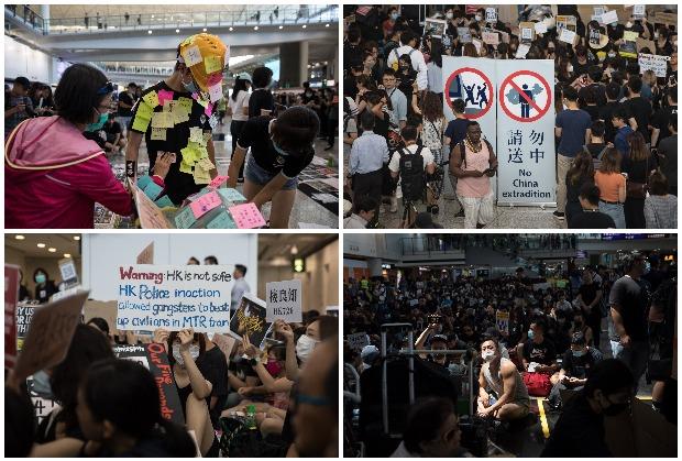 Nekoliko stotina demonstranata stiglo je na aerodrom u Hongkongu i pozivali na demokratiju, a neki su i uzvikivali "slobodan Hongkong", dok obližnji Singapur savetuje svojim građanima da izbegavaju delove tog regiona.