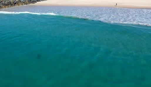 Može se videti kako je ajkula u jednom trenutku krenula ka njima, i kada je došla blizu, promenila je pravac i zaplivala ka drugom delu obale gde se nalazio veliki broj šetača koji su imali prilike da ajkulu vide iz neposredne blizine.
