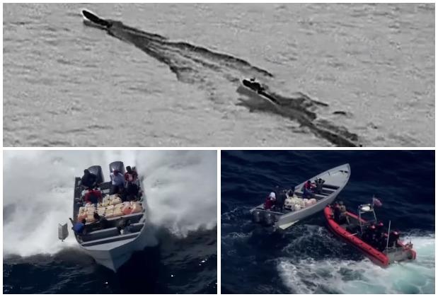 Na video snimcima koj su nastali tokom potere, a koje je objavila Federalna agencija za zaštitu granice i carine, vidi s ekako drogu bacaju u more.Takođe se vidi i kako su pripadnici Obalske straže uz pretnju vatrenim oružjem uhapsili devet krijumčara droge.