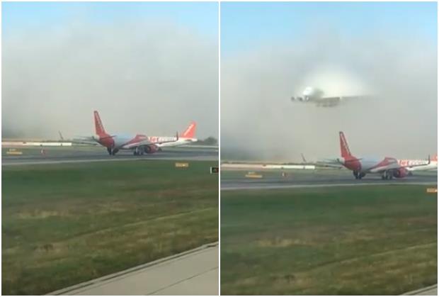 Može se videti jedna sasvim obična scena na pisti, a onda se odjednom iz oblaka pojavio Erbas A380.