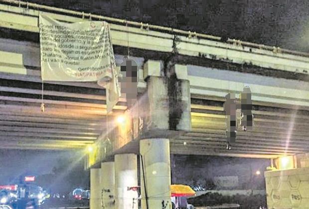 Devet unakaženih tela, među kojima su i dva ženska, obešeno je o nadvožnjak uz transparent sa oznakom CJNG (Kartel Halisko nju dženerejšen), dok je ostalih deset tela raskomadano i razbacano po okolnim putevima.
