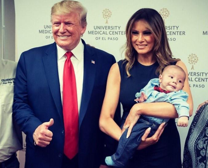 DA LI JE OVO NORMALNO: Tramp se opet OBRUKAO! Nasmejan i sa podignutim palcem slikao se s bebom kojoj su roditelji ubijeni u masakru u El Pasu! FOTO