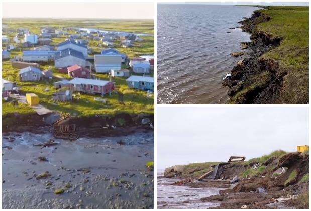 Večni led više nije “večan”. Led se topi i tako raste nivo okeana, pa se njihov komad zemlje postupno pretvara u močvaru. Sada se po naselju može kretati samo po posebnim drvenim platformama. U more svake godine odlazi neverovatnih 30 metara obale.