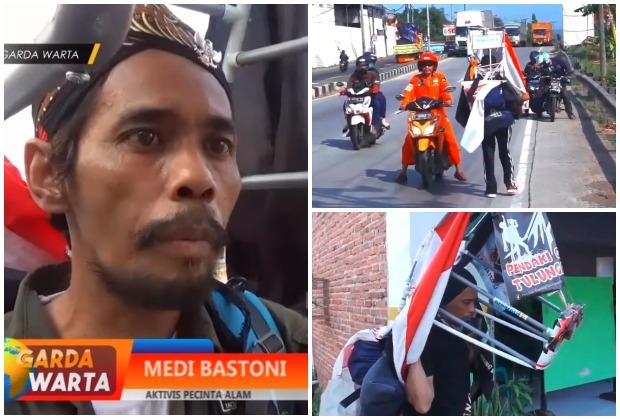 Medi Bastoni (43) počeo je svoju napornu ekspediciju 18. jula iz svog sela na obronku planine Vilis, neaktivnom vulkanu u indonežanskj provinciji Istočnoj Javi, koja je pogođena ogoljavaljem šuma.