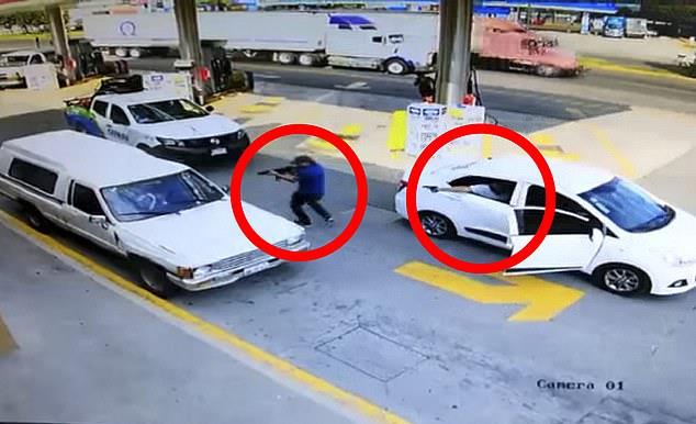 Snimci sigurnosnih kamera na benzinskoj pumpi koja se nalazi u Mapeku, kvartu u meksičkom gradu Uruapan, pokazuju muškarca kako nišani vočača pogrebnih kola.