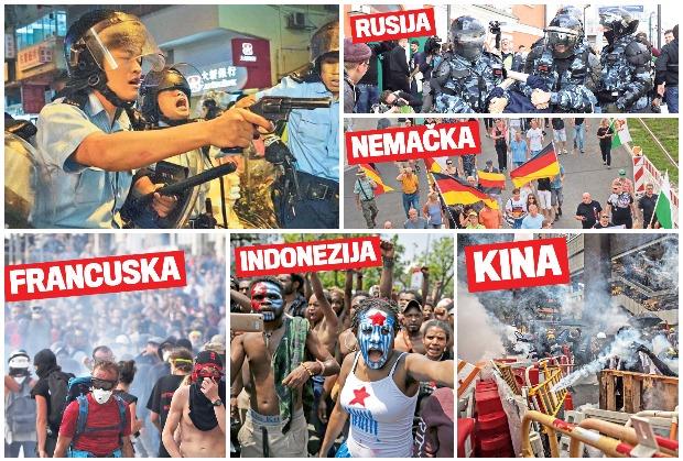 Skoro svakog vikenda protestuje se u Francuskoj, Kini, Rusiji, Zapadnoj Papui... Zahtevi su uglavnom slični - traže se smene predsednika ili guvernera, bolji standard i socijalna jednakost, više slobode i poštovanja zakona... I većina njih se završava isto - masovnim hapšenjima, suzavcem i vodenim topovima.