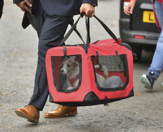 Britanski premijer Boris Džonson i njegova devojka Keri Simonds dočekali su danas spaseno štene, kome će Dauning strit 10 biti novi dom.